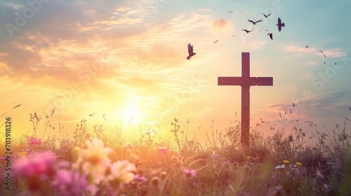 Background image for the church office: The Cross symbol of God, christian, easter and funeral.