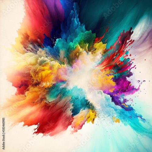 Background made with abstract watercolor colorful digital painting blurred color splash explosive empty coloring contoured art pattern rainbow powder white canvas cloud paint splatter Generative AI