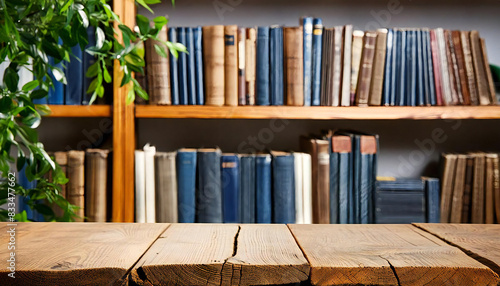本棚とテーブルの背景素材。Background material of bookshelves and tables.