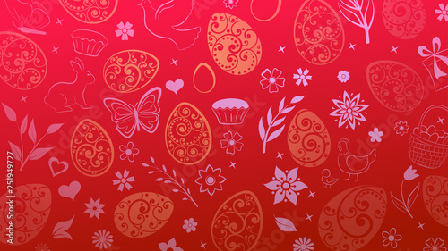 red, yellow, easter, egg, egg, flower, cake, hare, hen, chicken, bow, vector, background, happy easter, design, gradient, illustration, spring, holiday, religion, religious, god, risen, symbol, celebration, texture, decoration, element, wallpaper, drawing, ornament, happy, bright, season, decor, greeting, decorative, colours