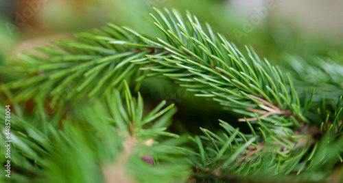 Background of green fir branches for Christmas New Year celebration greeting card design