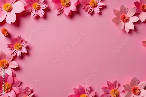 Background of pink paper flowers with empty space for text or greeting card design. Postcard for International Women's Day and Mother's Day