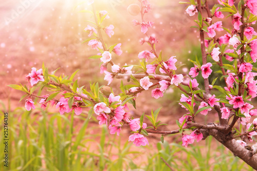 background of spring blossom tree with pink beautiful flowers. selective focus