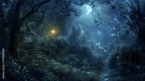 background with forest night with moon