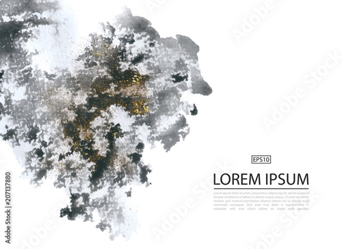 Background with gray and gold marble watercolor texture. Vector illustration.