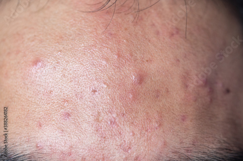 Backgrounds of lesions skin caused by acne on the face in the clinic.