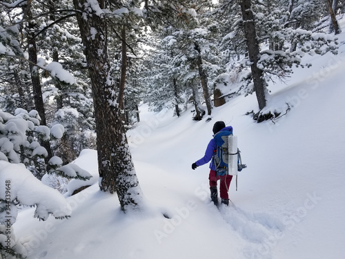 snow, winter, cold, mountain, ski, skiing, sport, nature, landscape, people, forest, hiking, woman, active, skier, activity, boy, white, children, sky, fun, tree, family, tree, backpacking, camping, serene