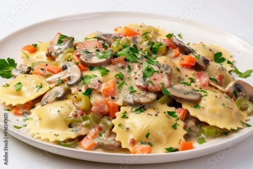 Bacon and Mushroom Ravioli in Rich Creamy Basil Sauce