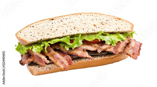 bacon, sandwich, breakfast, lunch, food, delicious, tasty, appetising, meal, cookery, eat, eating, dinner, epicure, eatery, cafes, bakery, cook, cooking, receipe, bread, lettuce, tomatoes, vegetable, healthy, unhealthy, diet, weight, fat, protein, carb, calorie, energy, fresh, juicy, crispy, savoury, flavorful, appealing, mouth-watering, photo, food photography, still life, white background, isolated, closeup, hi-res
