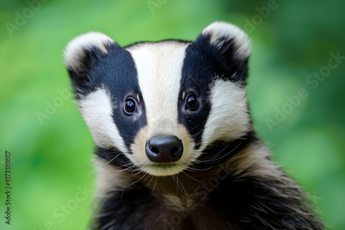 badger on a green color background, vector art, digital art, faceted, minimal, abstract, panorama background.