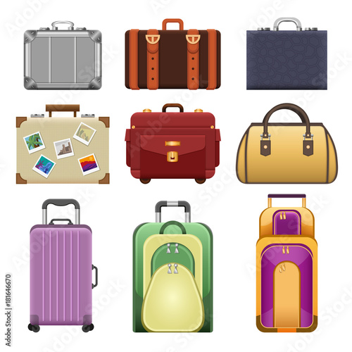 symbol, design, signs, vector, realistic, modern, colours, bright, background, idea, quality, image, graphic, item, shape, clip, object, isolated, unusual, concept, set, bag, suitcase, baggage, pursed, travel, kit, pack, form, sticker, art, metal, carry, leather, billfold, textile, white, belt, light, valise, journey, vacation, case, heavy, photo, package, train, flight, plane