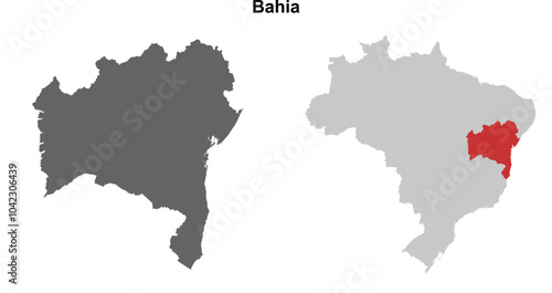 Bahia state blank outline map set