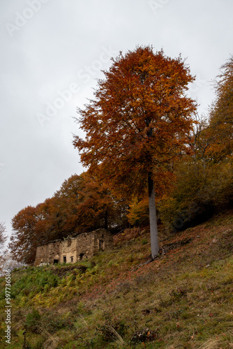fall, chalet, forest, forest, countryside, dismal, colours, nature, mountain, tree, decadent, autumn, atmosphere, foliage, forest, rural