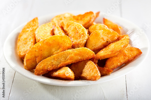 potato, roasted, baked, board, plate, closeup, cooked, dinner, dish, food, fried, healthy, herb, lunch, meal, nobody, object, rustic, snack, spicey, vegetable, wedge, yellow