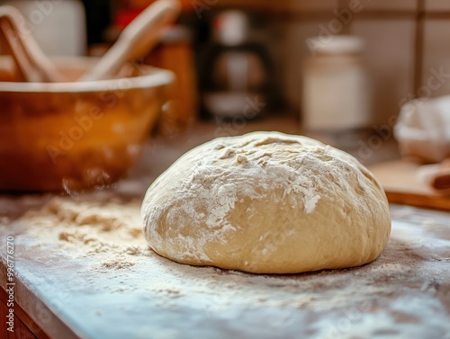 Baking bread with vibrant dough, cozy kitchen setup, soft lighting.