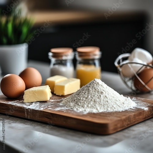 Baking Ingredients: Flour, Butter, and Eggs Ready for Baking