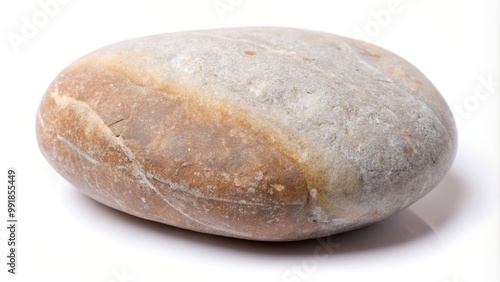 Balancing natural stone pebble isolated with clipping path at a tilted angle, balance, relaxation, stability, Zen, stone, isolated, decoration, natural, spa, design, concept, round, white