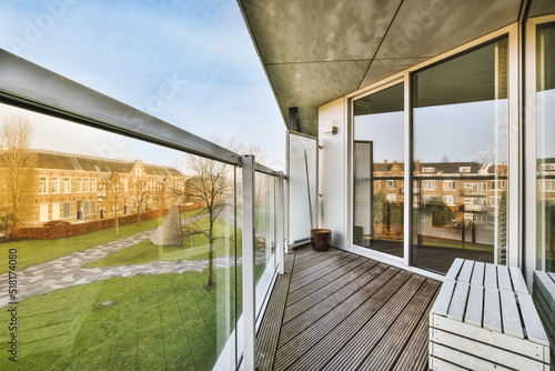 balcony, design, table, park, fence, comfort, style, lawn, modern, roomy, contemporary, lush, vegetate, furniture, glasses, grass, plant, to sit, storage, blue skies, residential, accommodation, estate, development, neighbourhood, property, dwell, transparent, decor, seat, verdant, nobody, flat, building, apartment, empty, floor, residence, lounge, barrier, wooden, material, railing, minimal, decorative, facades, city, district, outdoors