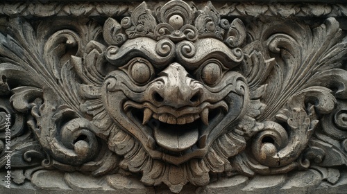Balinese Carving. Artistic Grey Background with Balinese Craft