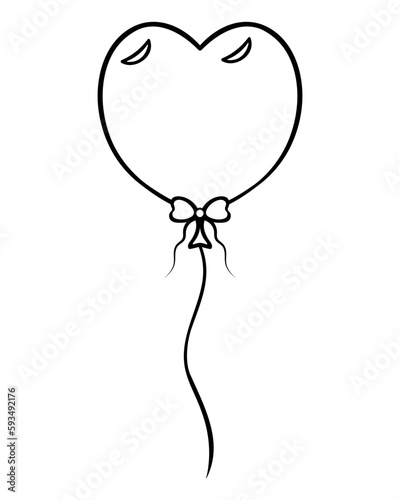 Balloon in the shape of a heart. Sketch. The foil ball is tied with a bow. Doodle style. Vector illustration. Coloring book. Nice decoration for the holiday. Outline on isolated background.