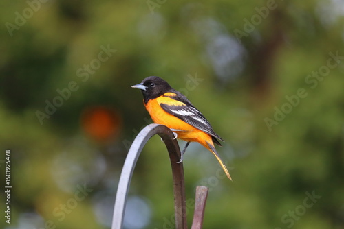 Baltimore Oriole Perched on a Metal Hook