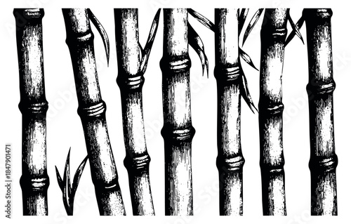 bamboo, stalk, plant, nature, black, white, line, art, leaf, wood, tropical, forest, natural, vegetation, stem, ornamental, illustration, organic, botanical, texture, tree branch, isolated, collection, growth, tall, eco, environment, green, asian, jungle, vignetting, vector