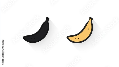banana, icon, illustration, fruit, healthy, food, graphic, design, vector, black, yellow, colours, comparison, ripe, unripe, organic, nourishment, fresh, simple, logotype, symbol, drawing, digital, flat, minimalist, outline, style, diet, vitamin, potassium, agriculture, nature, tropical, summer, iconography, element, isolated, modern, art, image