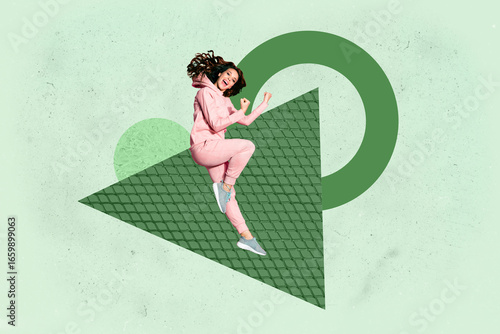 Banner creative art collage of happy businesswoman businessman receive development career aim achievement doodle success concept