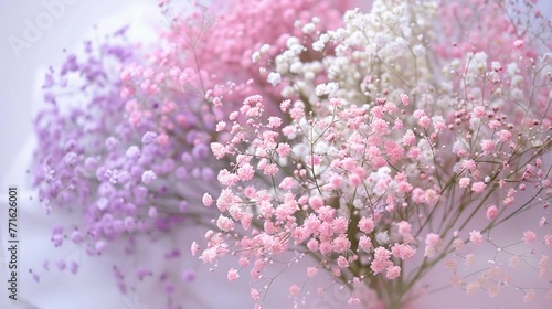 Banner with colorful dried flowers on soft light background. Floral decor in modern style. Greeting card template for wedding, valentine, mother's day or women's day, invitation. Floral background.