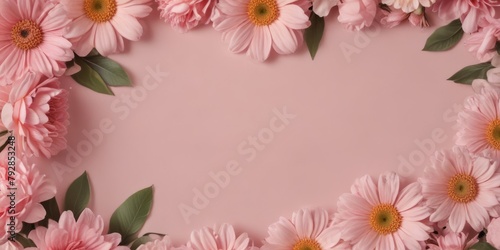 Banner with flowers on pink background. Greeting card template for Wedding, mothers or womans day