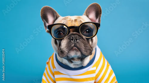 french bulldog, t-shirt, ai, sunglasses, summer, background, banner, animal, dog, funny, pet, puppy, fun, cute, bulldog, portrait, canino, domestic, french, happy, studio, companion, small, breed, doggy, friends, beautiful, pedigree, copy space, veterinary, lifestyle, shiny, poster, concept, mammal, empty, blank, friendship, looking, young, fluffy, copy space, little, billboard, pedigreed, posing, friendly