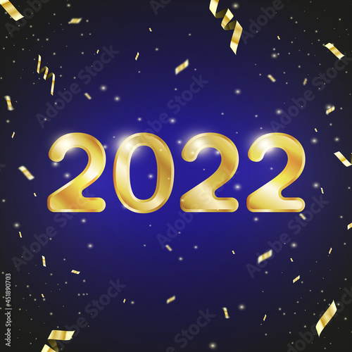 Banner with gold numbers celebrating 2022 on a dark background. Happy New Year!