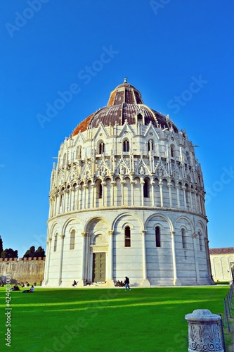 Baptistery of San Giovanni, one of the monuments of the Piazza del Duomo in Pisa in Tuscany, Italy.