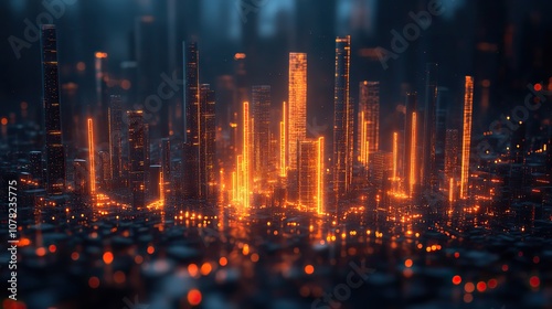 bar chart, chart, graph, infographic, statistic, visualisation, trend, city, night, light, fire, flames, technology, city landscape, business, animation, dark, architecture, urban, sky, digital, energy, skyline, light, skyscraper, building, design, art, blue