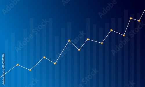 Bar Chart and White Graph Line with Glowing Points on Blue Gradient Background Showing Business Growth
