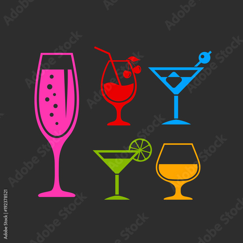cocktail, vector, icon, drink, signs, bar, symbol, logotype, alcohol, alcoholic, champaign, fizz, cider, gin, sparkling, bubble, ice, cold, wine, vine, punch, glasses, mix, party, celebration, birthday, anniversary, drinking, beverage, eatery, menu, soft, cup, shot, rummer, martini, liqueur, sweet, cherry, brandy, lemon, cognac, decoration, pictogram, outline, silhouette, flat, graphic, set
