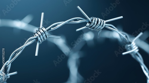 Barbed wire in sharp focus with blurred EU flag, symbolizing border control, immigration policies, and political restrictions in Europe