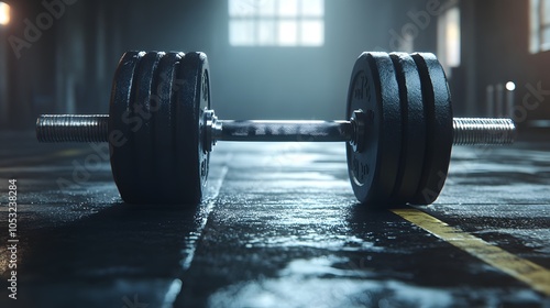 barbell resting on the gym floor bodybuilding concept background, generative ai