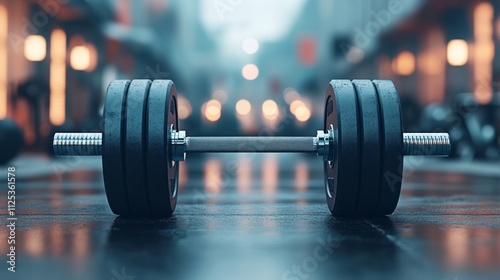 Barbell with Weights in Neon-Lit Gym