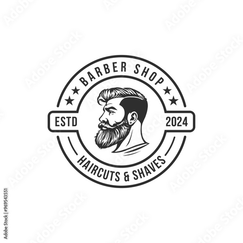 Barber shop logo template. Handsome man with beard and mustache. Scissors. Barber shop symbol. line art editable vector.