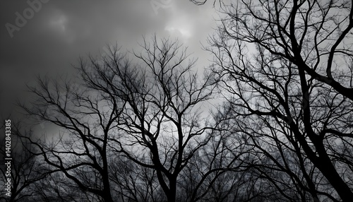bare trees, branch, winter, sky, cloud, overcast, monochrome, black-and-white, stark, nature, tree branch, silhouette, moody, atmospheric, dramatic, dark, gloomy, cold, leafless, tree, forest, timberland, wood, winter landscape, greyscale, line, twig, desolate, sombre, grey