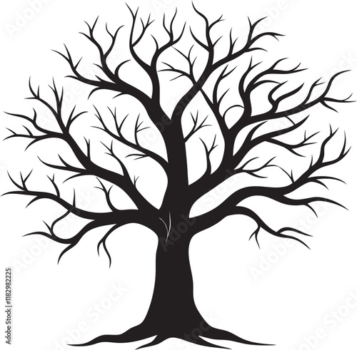 Bare Tree Silhouette with Sprawling Branches in Black and White