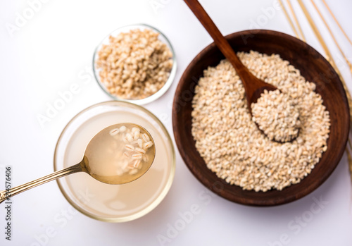 bowl, small, bottle, barley, water, food, healthy, background, glasses, health, isolated, drink, closeup, white, liquid, medicine, beverage, thirst, natural, fresh, brown, diet, cold, grain, herb, refreshing, vitamin, nature, asian, clear, blue, dish, pearl, iced, black, summer, concept, fiber, plant, object, leaf, sweet, wood, indian, india, wheat, seed, cooked, boiled, extract