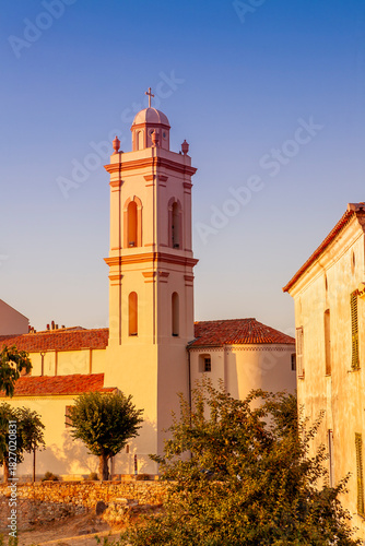 Baroque style Santa Maria Assunta church ( l792), stands majestically in the heart of the village. Piana, Corsica island, France.