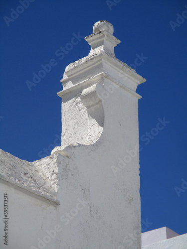 Baroque top decoration of a traditional white building in the old town of Medina Sidonia. Andalusia. Spain.