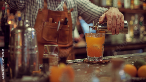 Bartender Making a Cocktail – perfect for showcasing mixology skills and vibrant drinks