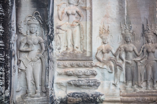 Bas relief sculptures in the amazing Angkor Wat temple, Siem Reap, Cambodia