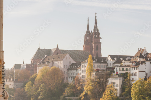 basel, city, minster, pfalz, church, rhine, switzerland, autumn, ferry, flux, shipping, tour tourism, touristy, tourist attraction, morning sun