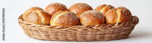 Basket of Assorted Bread Rolls, a full-body portrait featuring a variety of freshly baked rolls arranged neatly, set against a clean white backdrop for a minimalistic presentation.