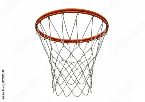 basketball, hoop, orange, metal, rim, white, nylon, net, criss-cross, pattern, sport, equipment, circular, design, closeup, isolated, background, detailed, netting, professional, grade, clean, line, simplified, graphic, iconic, symbol